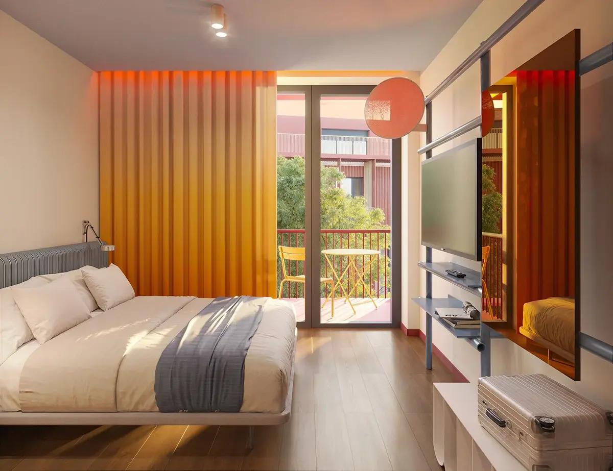 Una localización donde todo el sector hotelero quiere estar y Kategora está ya presente con Kora Lumen: 325 unidades con casi 3.000 m² de zonas comunes: restaurante, gastro áreas, gimnasios, coworking, piscina...